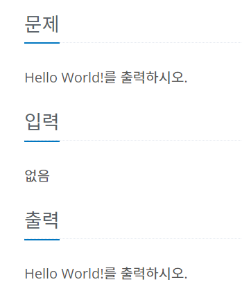 "Hello World!" 출력하면 되는 간단한 문제이다.