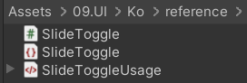 그리기 위해 일단 SlideToggle이라는 풀더(정리를 위)를 만들고 그 안에 SlideToggle라는 스크립트를 만들자.