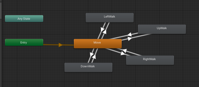 예시로 위, 아래, 왼쪽, 오른쪽으로 움직이는 간단한 2D 탑다운 애니메이션을 만들어 보자
